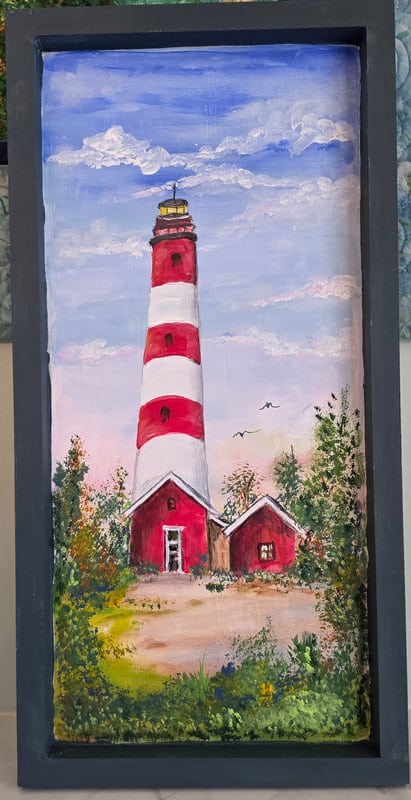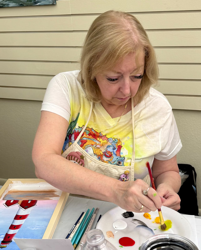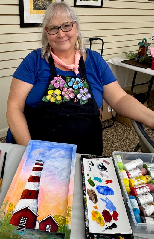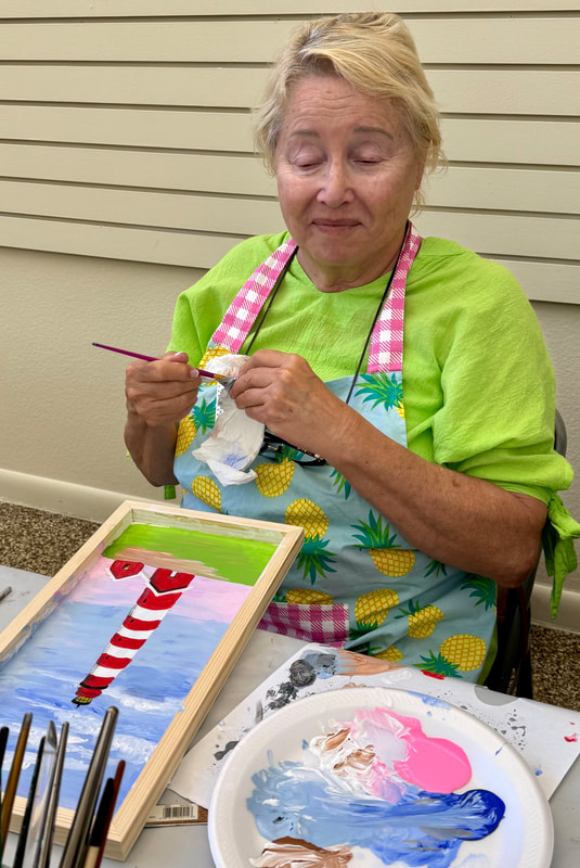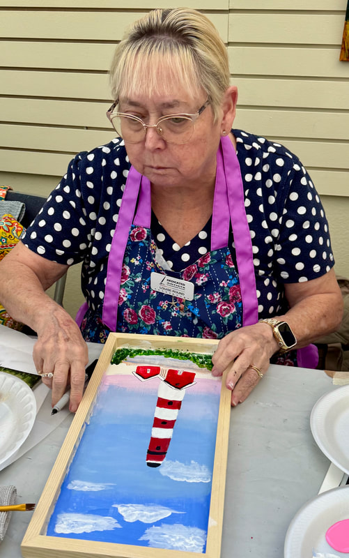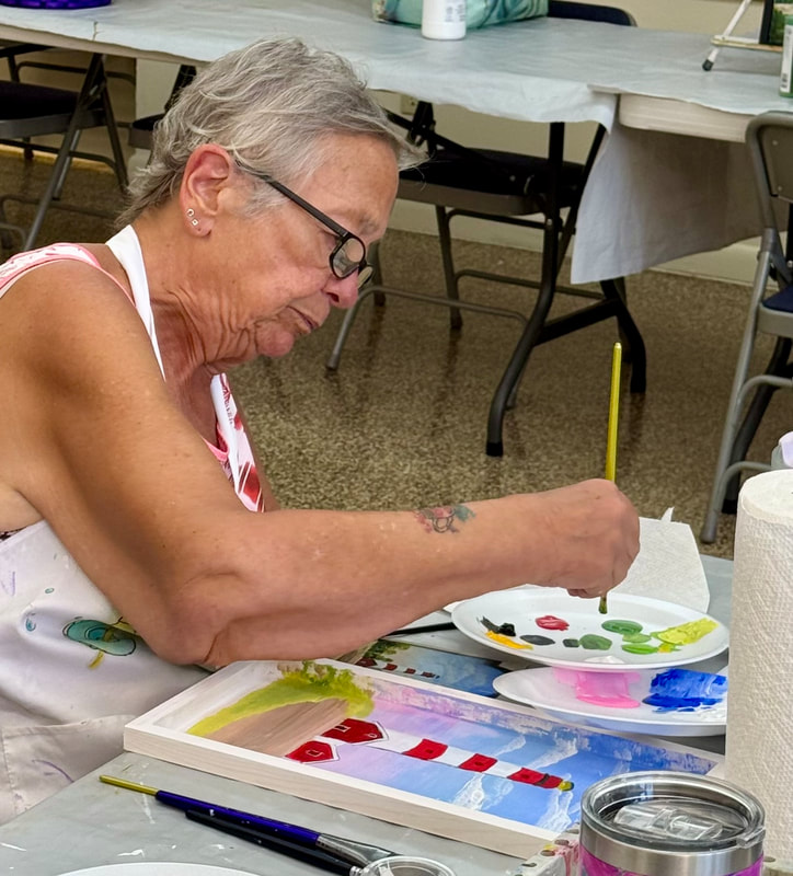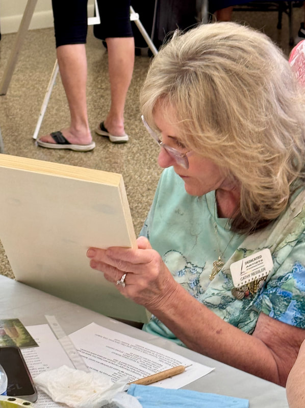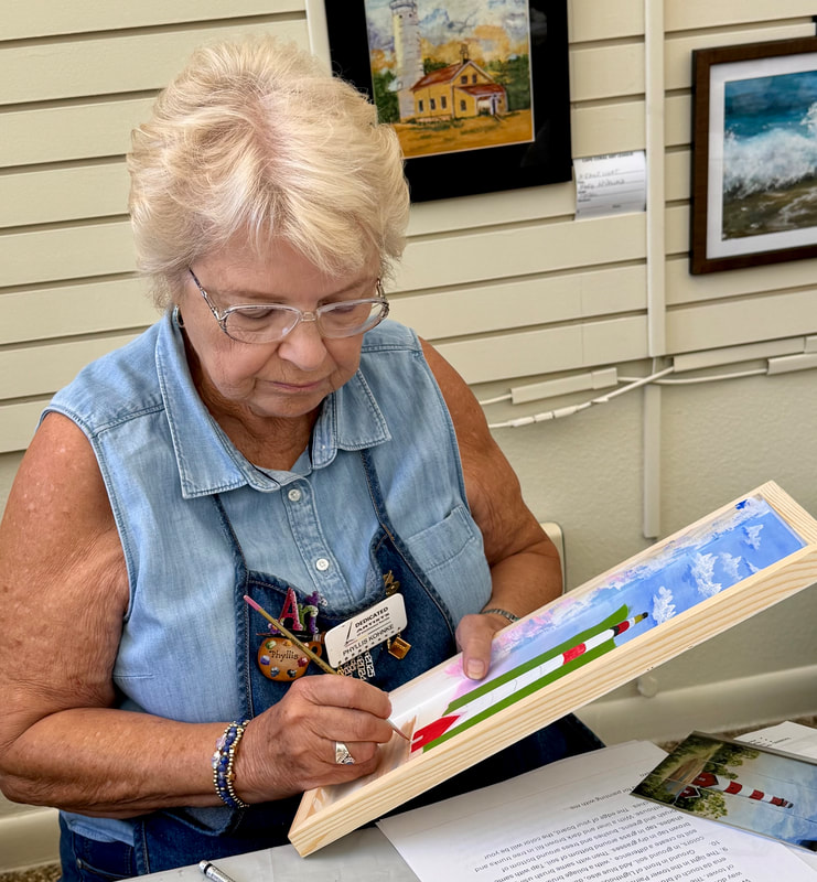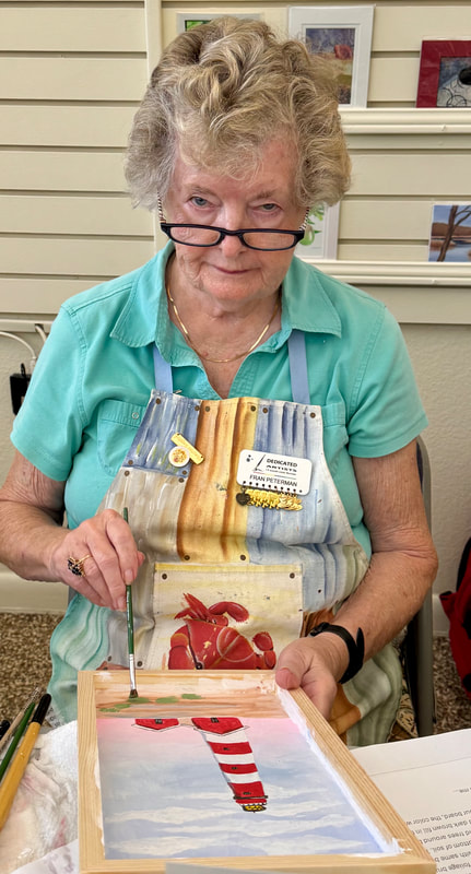 The Assateague Light program was relaxing and most successful as Gerri led us to paint without the usual pattern where it is necessary to stay inside of the lines. Active in art education for over three decades, Gerri is a fine artist who actively volunteers at various Galleries around the Fort Myers area. Members were most appreciative of Gerri’s skill as a teacher as she led us through this design by Ros Stallcup. Enjoy the photos of our show-and-tells and of members as they enjoyed another great DASF program…