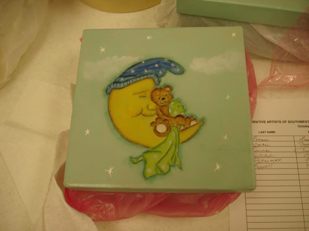 The Memory Box Project is a community outreach program of the Dedicated Artists of Southwest Florida. Member artists provide families with a painted box in which remembrances can be placed of their child lost due to miscarriage, stillbirth, or neonatal death. Each year in the US approximately 40,000 infants are stillborn. Each painted box represents sympathy and love flowing from our brush strokes to the families. The need is great. The recipients of the Memory Boxes appreciate the acknowledgement of their child’s brief life.
