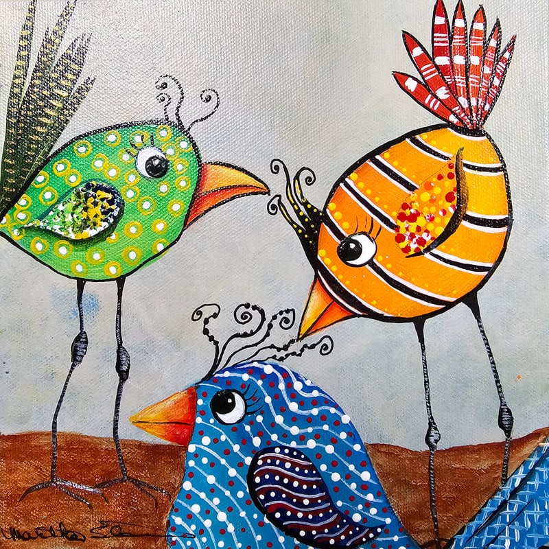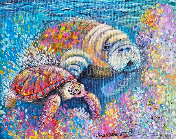 Growing up in northern Ohio and the Buffalo, New York area, Martha was an artist even before she knew she was an artist! With a creative father and an imaginative mother, school projects always had extras. Maps were on wood, enhanced with paint, nails and string. Texture, dimension and media were always a focus which stuck for a lifetime. Now as an adult (and SW FL resident since 1984), Martha’s work is cheerful, colorful, whimsical and varied using lots of different surfaces. The media may be acrylic, watercolor, markers, pen and ink, and the list goes on. Martha never stops painting and she never stops learning, taking online classes from instructors around the world.