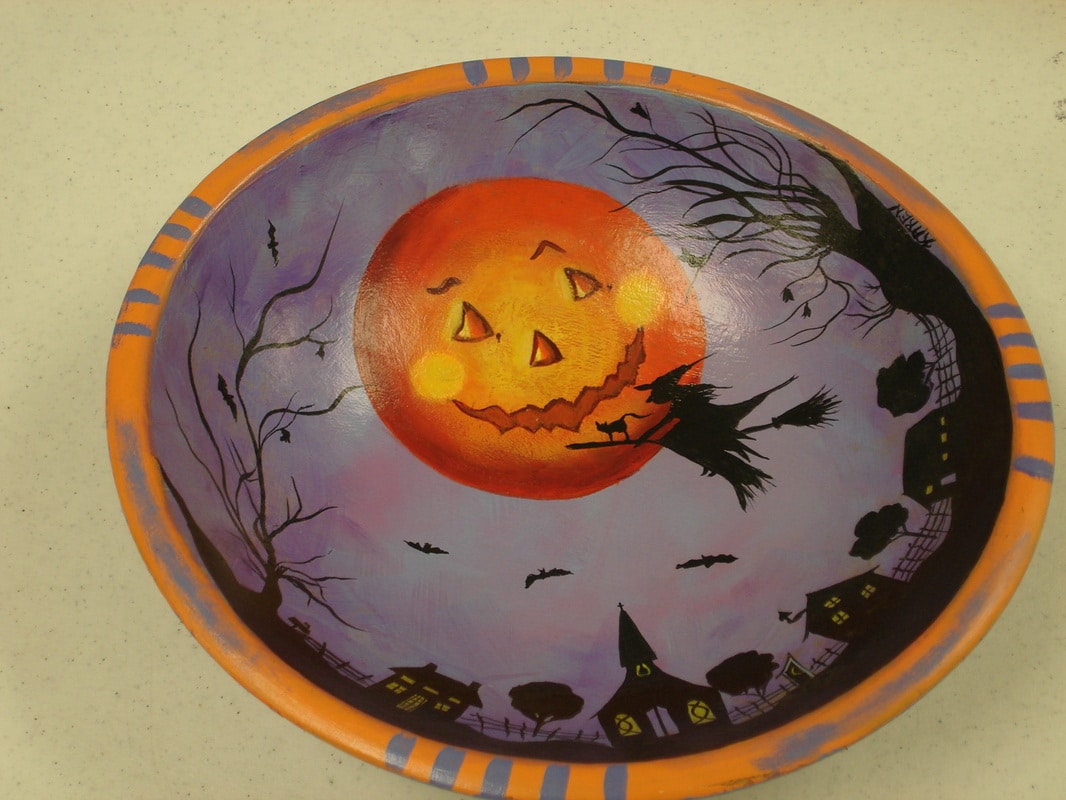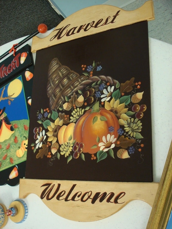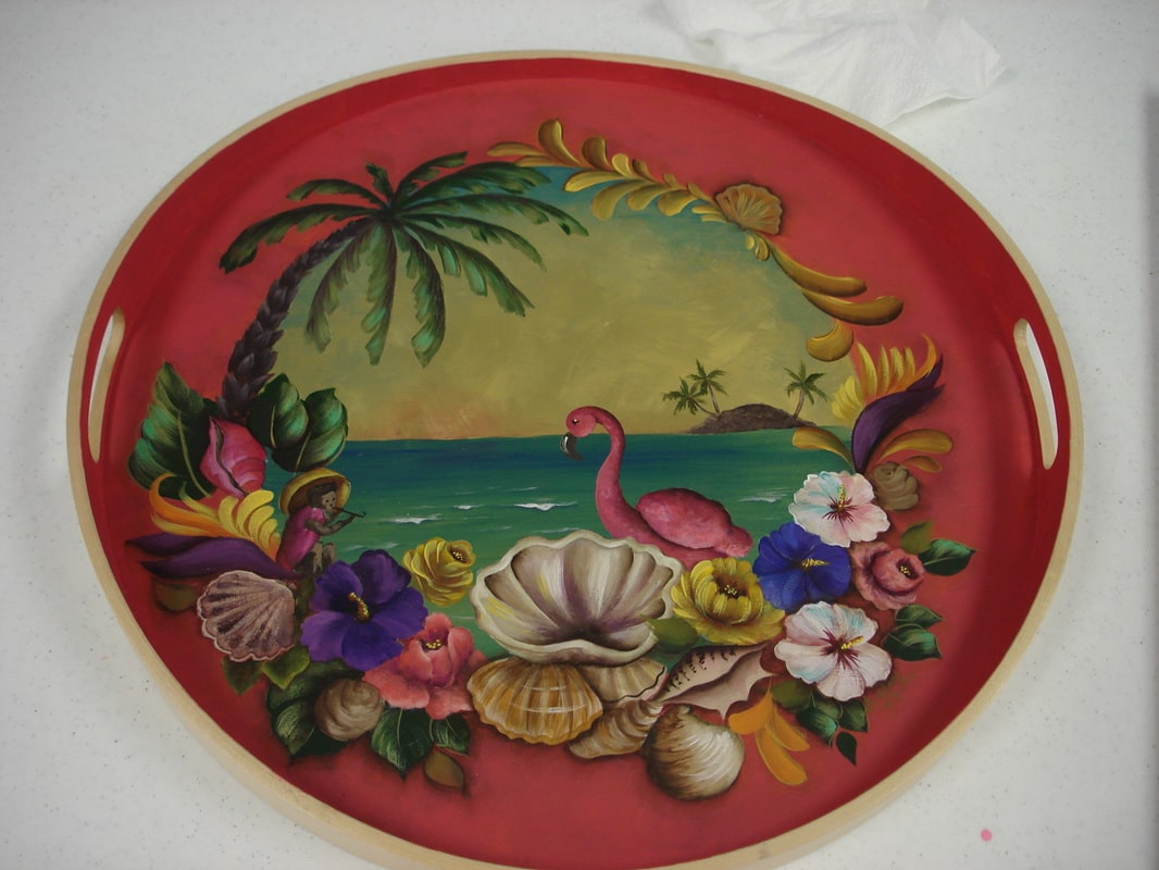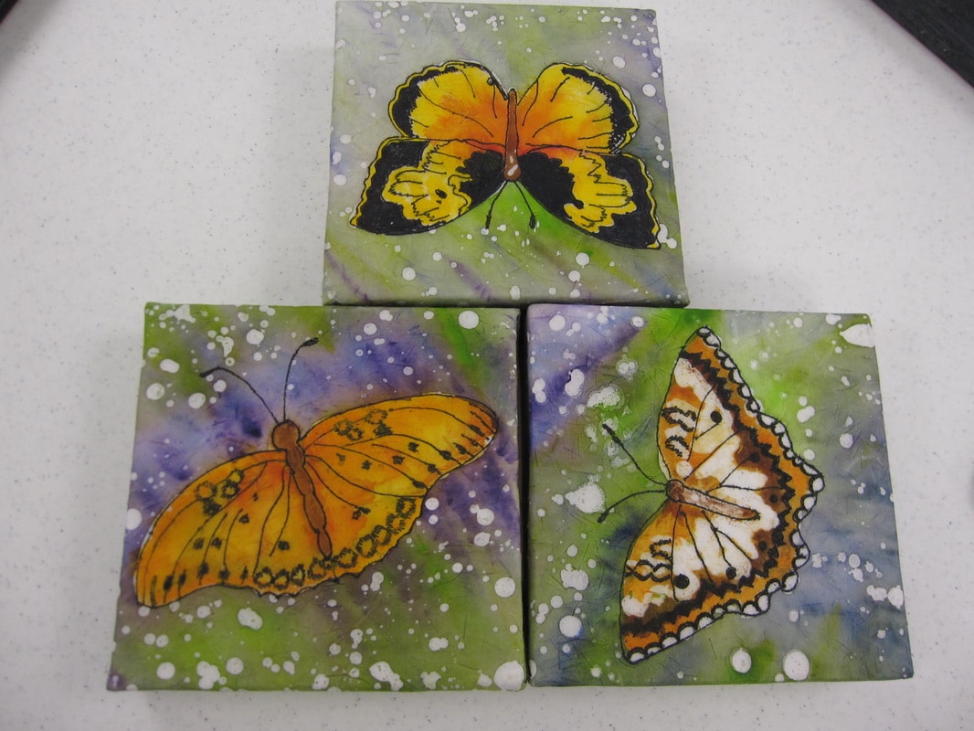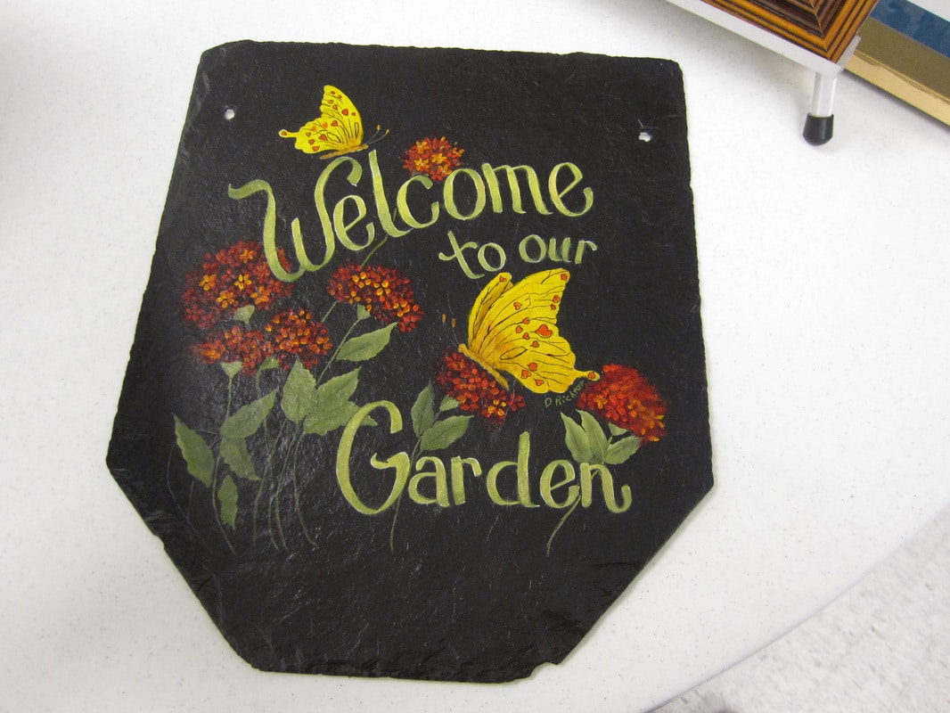 We paint on slate and tile, on wood, fabric, paper, and canvas, and pretty much everything you can imagine. We use acrylic paints, watercolors, colored pencils and oil.