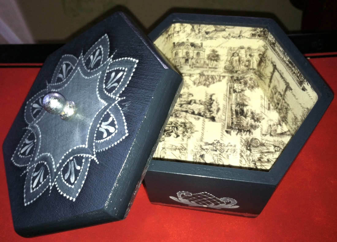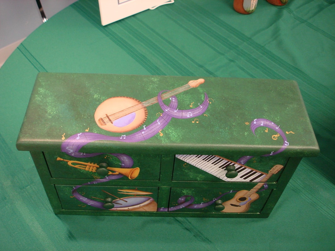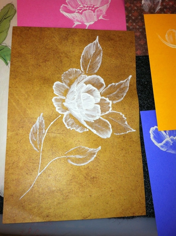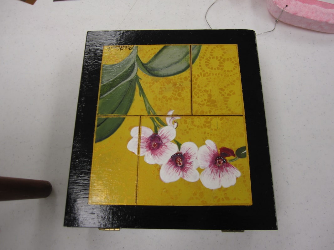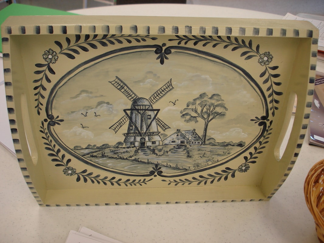 We paint on slate and tile, on wood, fabric, paper, and canvas, and pretty much everything you can imagine. We use acrylic paints, watercolors, colored pencils and oil.