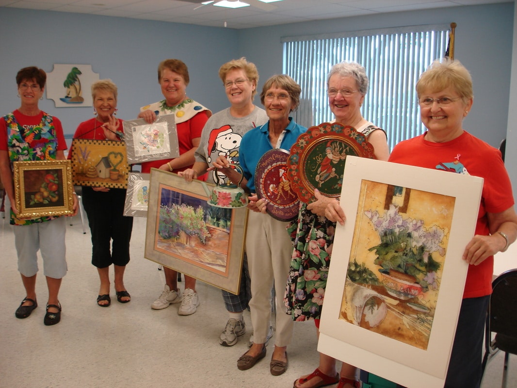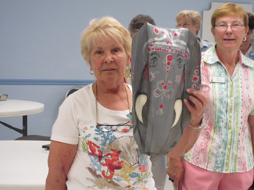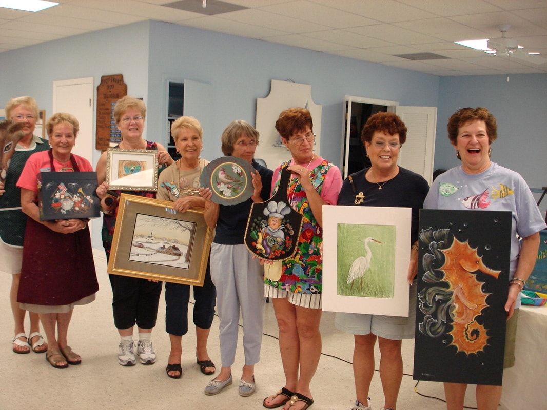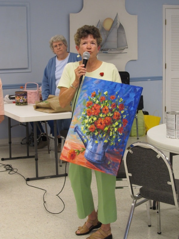 Show and Tell is a part of every meeting. Members bring their completed pieces from seminars, convention, or done at home to show and then tell a little about what it is.