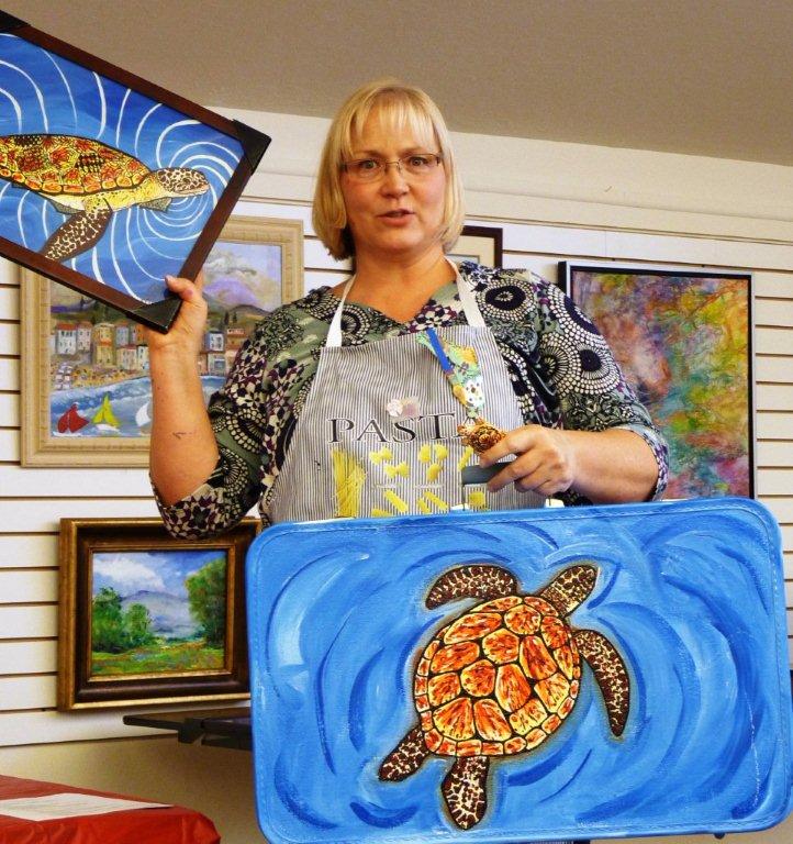 Surfaces can be ANY size because you will freehand much of the design, but the larger the piece, the better. Suzanne likes a large clay saucer – perfect for holding goodies!!