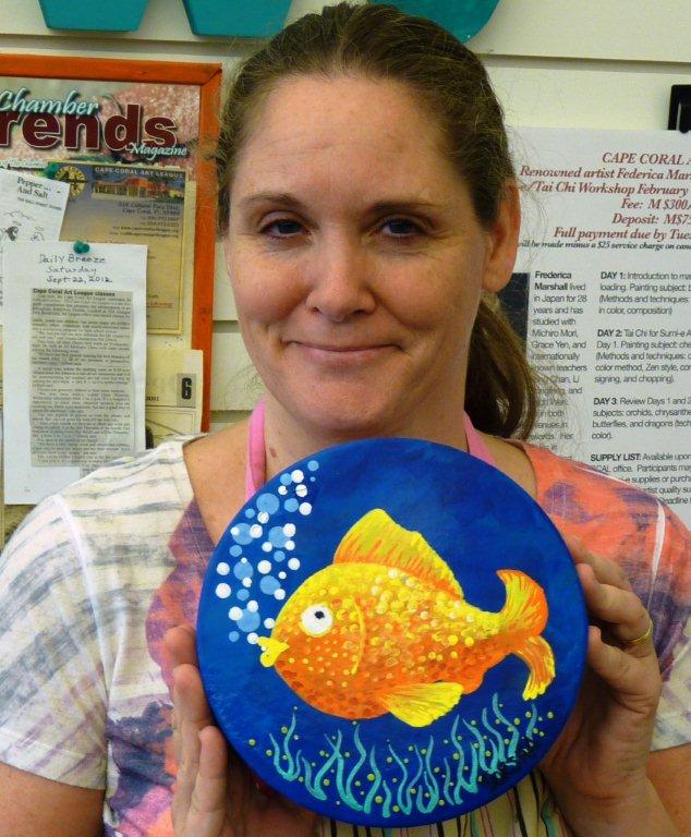 - Suggestions: Publix wood bowl …(prep with a sealer, e.g. Kilz) OR a large Terra Cotta saucer (12-14 inches in diameter) …(prep terra cotta piece with any sealer – just makes it easier to paint on)