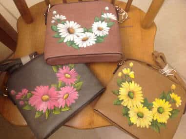 Painting on Pleather…Suzanne teaches in New England, Georgia, throughout Florida and holds regular classes in her home studio. With a unique ability to bring out hidden talents in others, under her leadership you can surprise yourself being a better painter than you thought you were.Join Suzanne for this special seminar brought to you by your Board to celebrate MEMBER APPRECIATION. Suzanne will lead painters in changing a leather cross body bag into a hand painted beauty! The value of the bag will soar. And you will be collecting plenty of compliments about town when you carry your own painted purse.We will enjoy a day that celebrates you as a member. We will take time out for the member appreciation lunch, also provided by the board. And finally, Suzanne promises you will be taking home a finished hand bag!