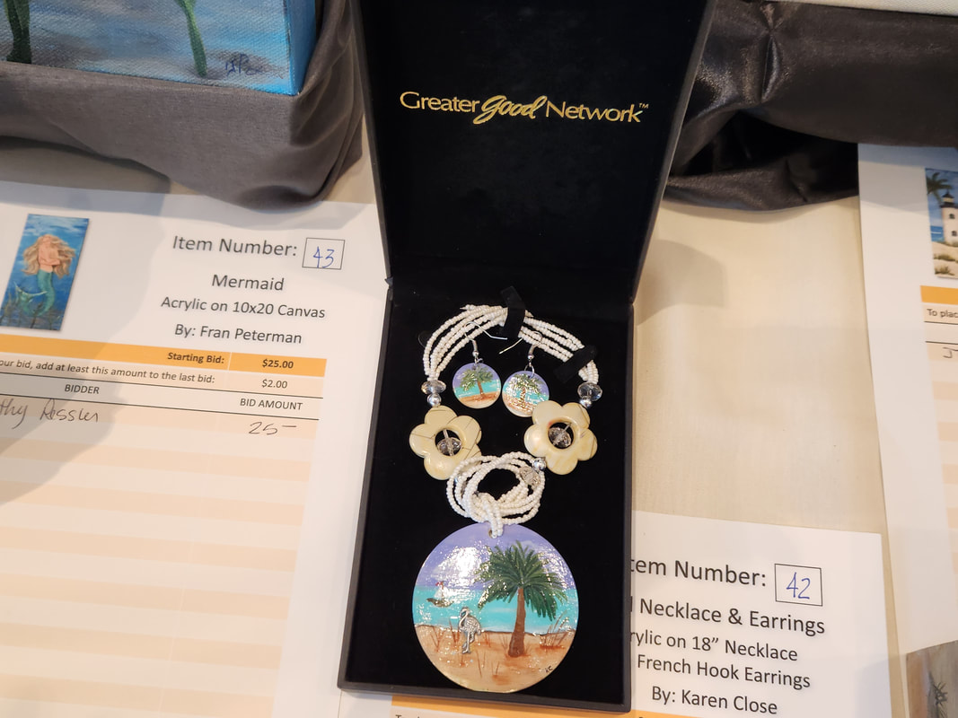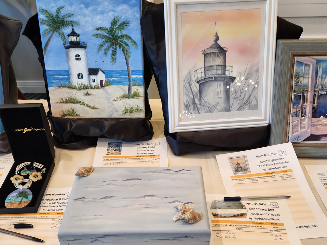 Next, there is the ‘Silent Auction‘. The price of art is determined by the bidding. Making the highest bid on the Bid Sheets makes you the lucky winner. Watching the Bid Sheets if fun. The money earned is used to fund an annual scholarship, for memory boxes, and to fund the club for the coming year. Members – the more you paint, the better your artwork and the finish, the more the club earns.