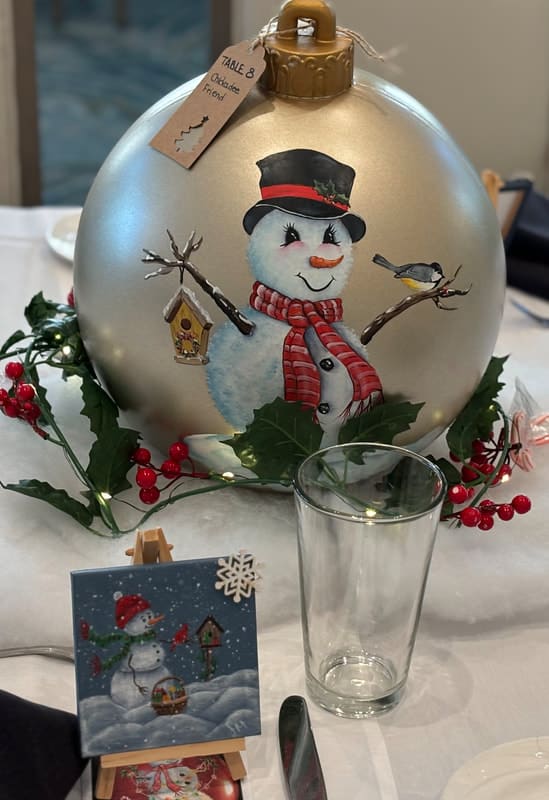 Tables are for 10 and can be reserved for your Group (paid reservations, of course) or your smaller group will be accommodated and seated together. Everyone goes home with an original handpainted angel ornament. It is a wonderful day to share with your friends.